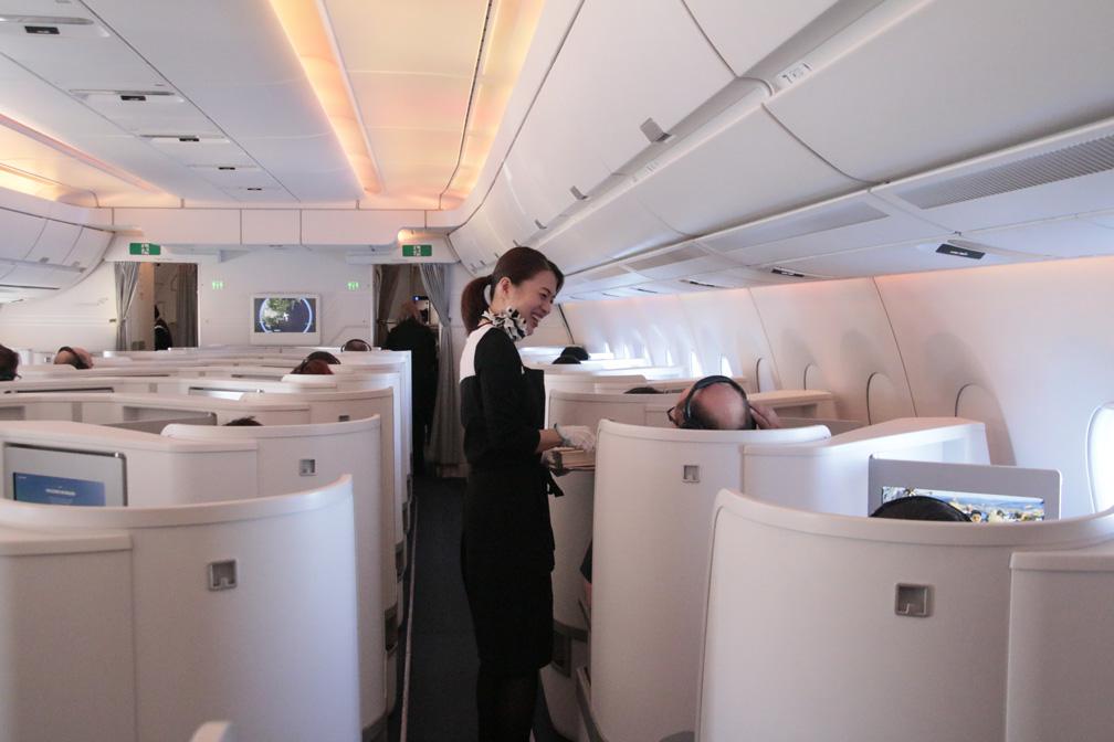 サービス中の日本人客室乗務員