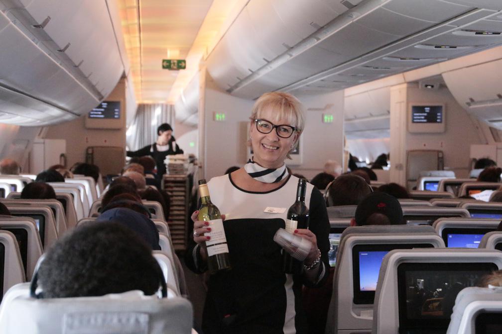 写真 : エコノミークラスでサービス中の客室乗務員