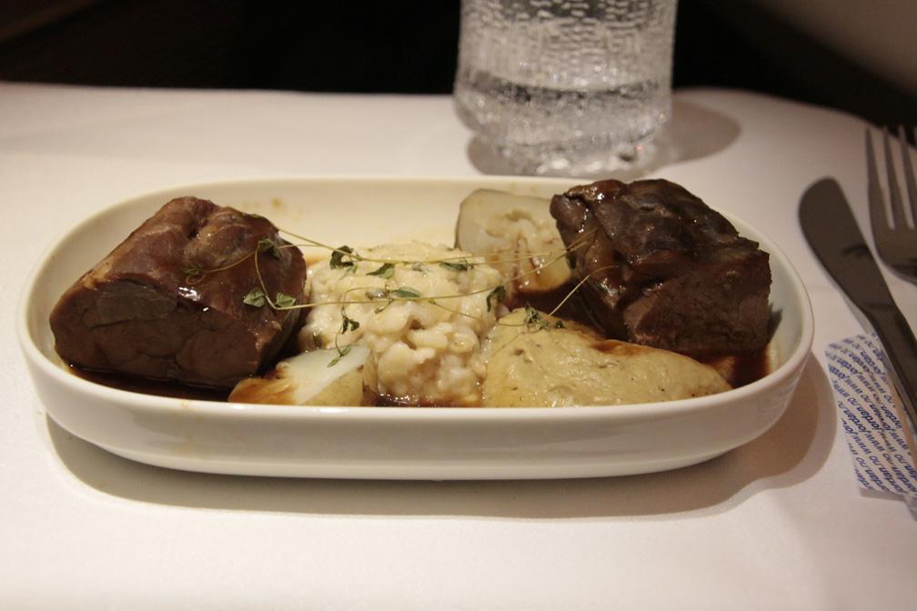 最後に、唐辛子風味のチョコレートケーキ・オーガニックアイスクリーム・フルーツから好きなものを選びます。メイン料理で鹿の肉が選べるのもフィンエアーらしいですね。
