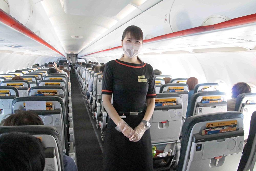 機内に立つ客室乗務員