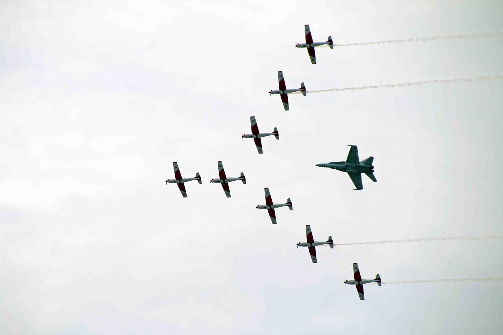 スイス空軍のピラタスPC-7チームと同軍F18ホーネットディスプレイチームの混成飛行は見事な飛びっぷりでした。