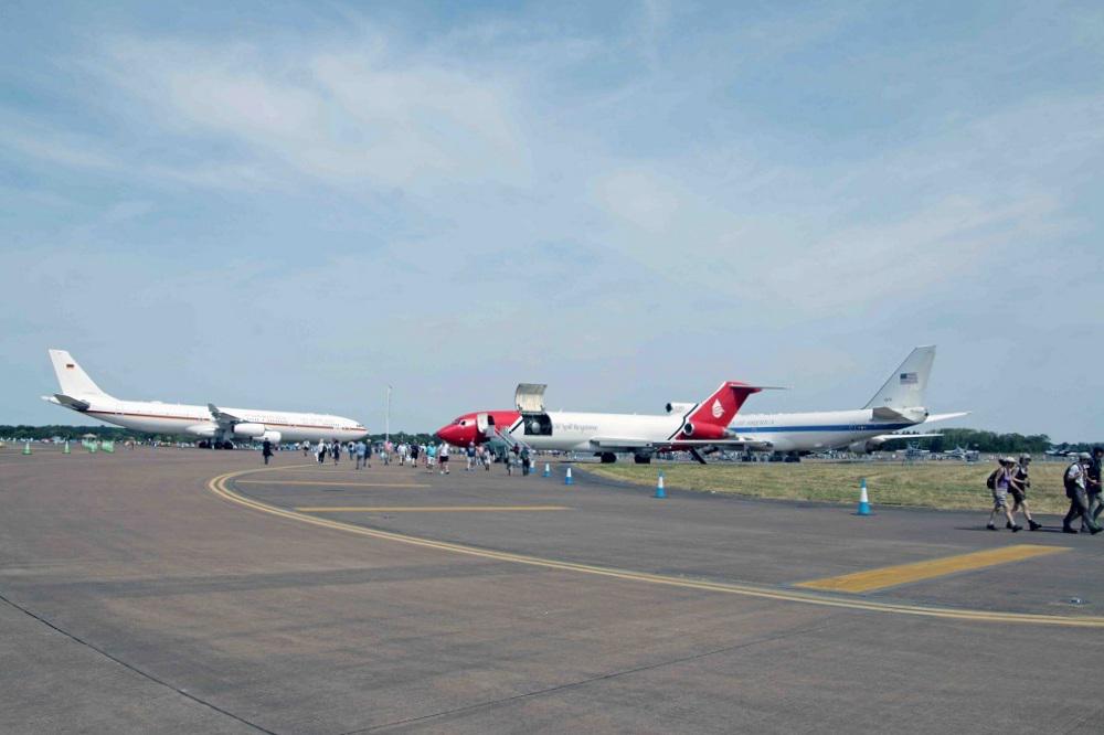 純粋な民間機はありませんが、軍用で活躍する旅客機の展示はありました。アメリカ空軍E4B(31676)、ドイツ空軍のA340-300ベースの16+02、カナダ軍A310-304ベースのCC-150(15003)に加えOil Spill Responseのボーイング727-2F2SF(G-OSRA)も姿を見せていました。