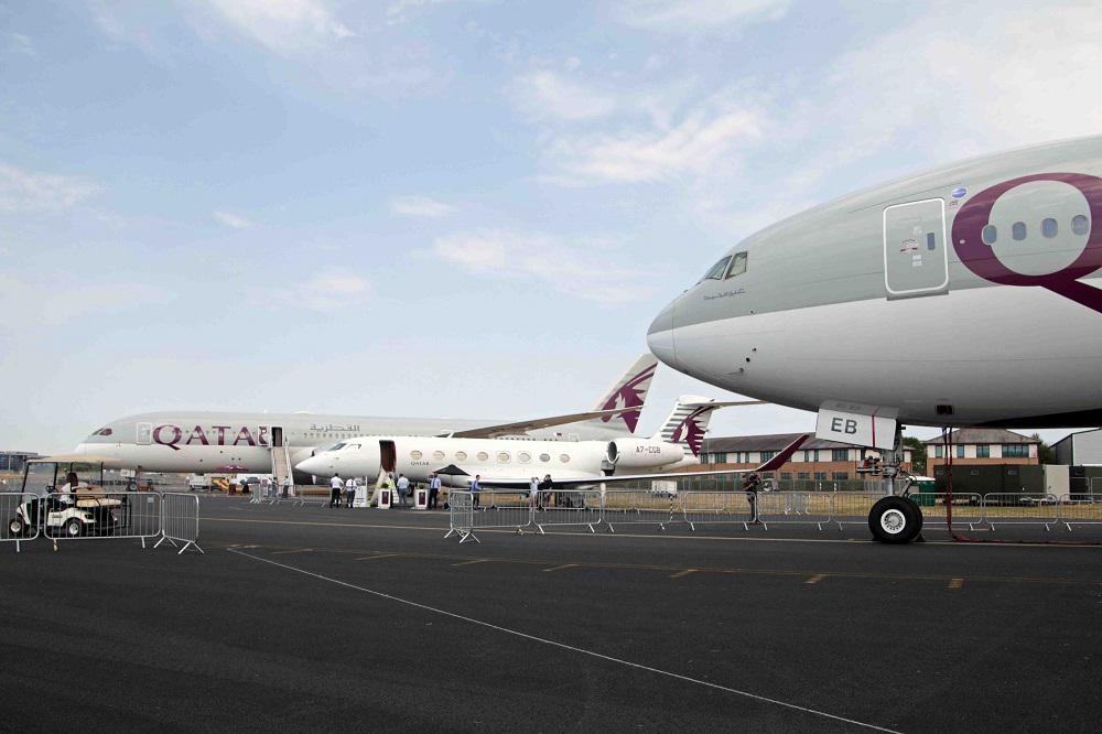 会場の最奥では、多くのエアショーへの出展で存在感を発揮するカタール航空が3機機体を並べていました。ボーイング787-9(A7-BHF)とボーイング777-300ER(A7-BEB)はFIFA ワールドカップ カタール 2022特別塗装機に加えてカタール・エグゼクティブのガルフストリームG650ER(A7-CGB)が地上展示されており、自由に見学ができるようになっていました。