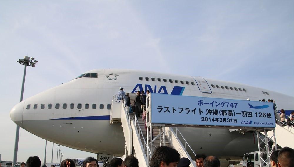 初便のフライト経験者としてはラストフライトへの搭乗でジャンボ愛を貫きたいもの。2014年3月31日に沖縄那覇空港に向かいました。NH126便への搭乗においてANAでジャンボを完結することができました。
