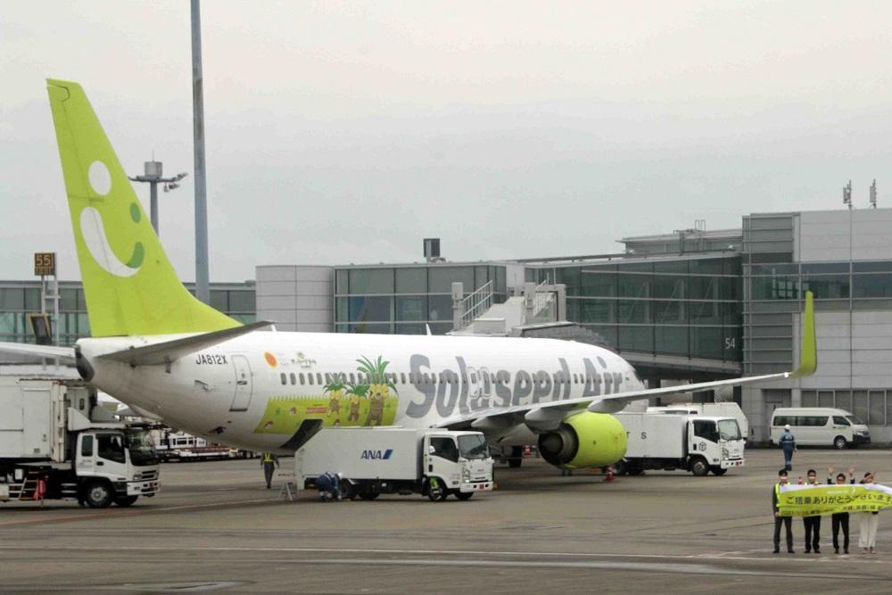 就航便は宮崎から那覇に飛ぶSNA067便となり、宮崎空港でセレモニーが開催されました。筆者は、就航前に羽田空港から宮崎空港に飛ぶデビュー前便に乗ってお見送りに参加しました。
