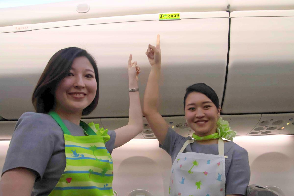 【画像:機内で笑顔を見せるCAのお二人】