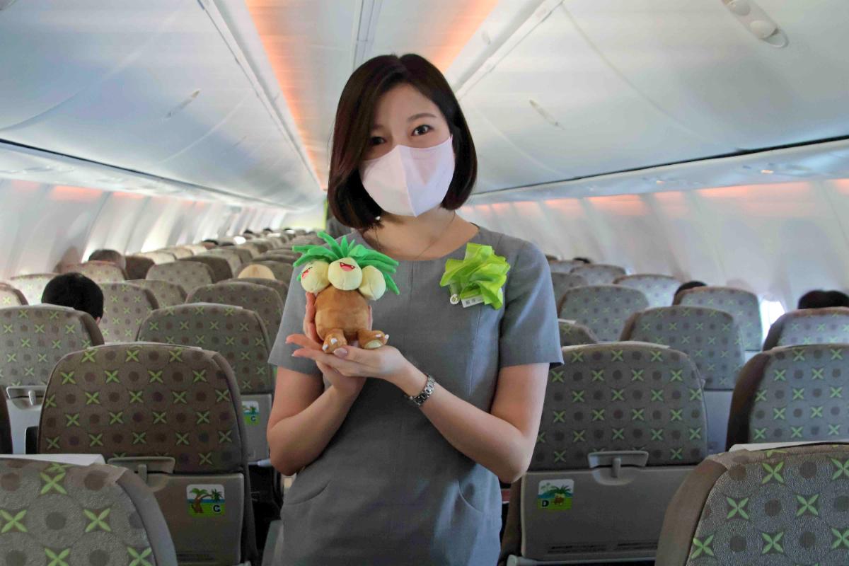 サービスの落ち着いた機内で、CAの飯塚愛海(いいづかめぐみ)さんに就航初便に乗務できた感想とポケモンについて聞いてみました。「私自身このような就航便に乗務するのは初めての事で緊張もしていますが、楽しんで仕事しています。また、幼い頃にポケモンに親しんでいましたので、懐かしい気持ちです。」と語ってくれました。