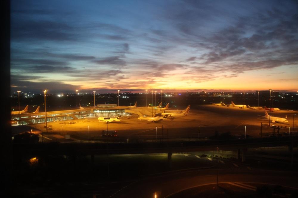 東向きの部屋から朝日が昇ると、国内線ターミナルビルにも陽が差します。天気のいい日には、飛行機の見える中で朝のマジックアワーを楽しむことが出来ます。これは贅沢な経験でした。
