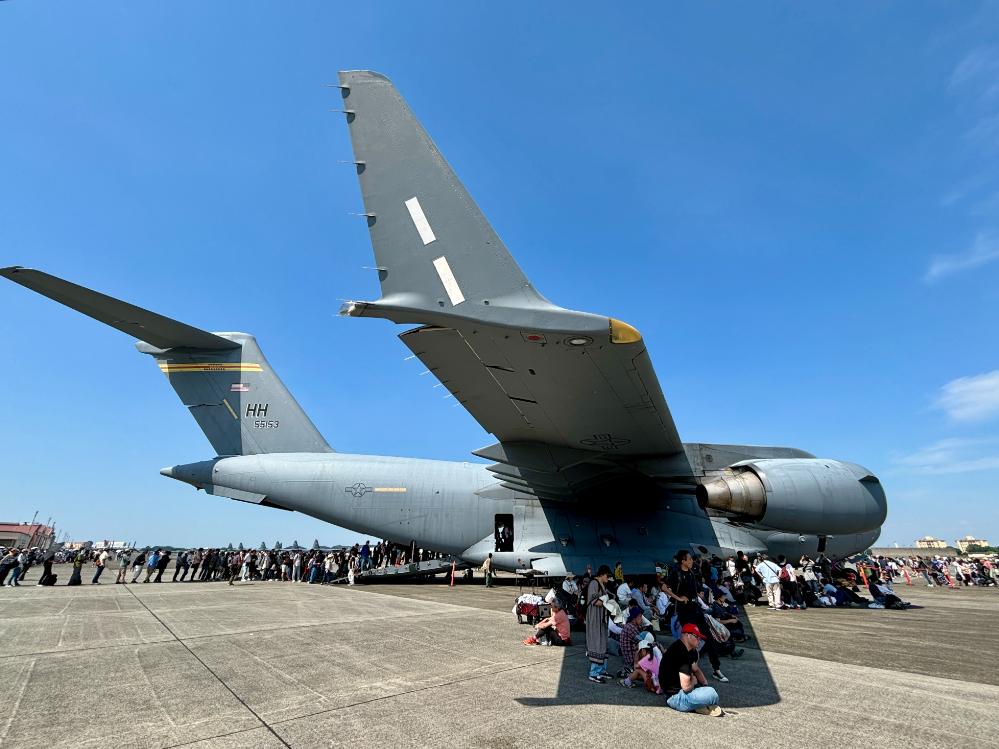 真珠湾ヒッカム統合基地の第15航空団に所属する米空軍のC-17グローブマスターIIIが展示されている。家族連れや子供たちは機体に入り込んで満面の笑みを浮かべていた。カリフォルニア州トラビス空軍基地に所属するC-5Mスーパーギャラクシーも参加し、航空ファンが押し寄せていた。