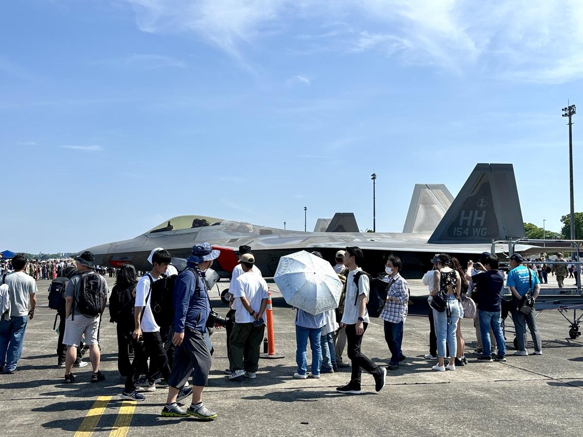 戦闘機や輸送機、ヘリコプターが整然と並び、訪れた人々の関心を引いていた。特に目を引いたのは第199戦闘飛行隊に所属する米空軍F-22戦闘機ラプターで、その鋭利なデザインと先進的な技術には圧倒されるばかりだった。