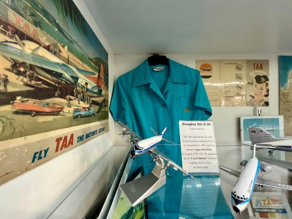 この受付のある展示館内には、オーストラリアの過去からのエアラインの歴史が模型や客室乗務員の制服などとともにずらっと展示されています。