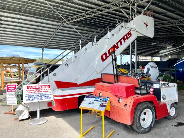 展示物の中には、1959年製造のカンタス航空ボーイング707用の可動式タラップもあります。1989年に使用されていたブリスベン空港から陸路運ばれてきたもの。現在でも乗降は可能で、昇ってみると館内を見下ろすことが出来て新鮮です。