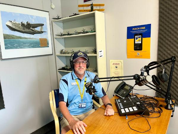 QAM社長のガリー・ヒルズさんに話を聞くことができました。2022年からマッハワンというポッドキャストの音声プログラムを制作しており、オーストラリアの様々な航空関係者との会話が収録され、公開されています。館内には収録スタジオも用意されていました。