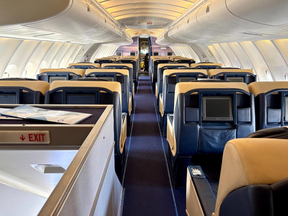 機首部分の「空飛ぶリビングルーム」は、VIP輸送機としての最高峰の機能美と、現代的な豪華さを象徴しています。一方、アッパーデッキのビジネスクラスは、B747が長きにわたり世界の空を支えてきた歴史と、時代を超えて愛されるべき上質な空間を静かに物語っていました。