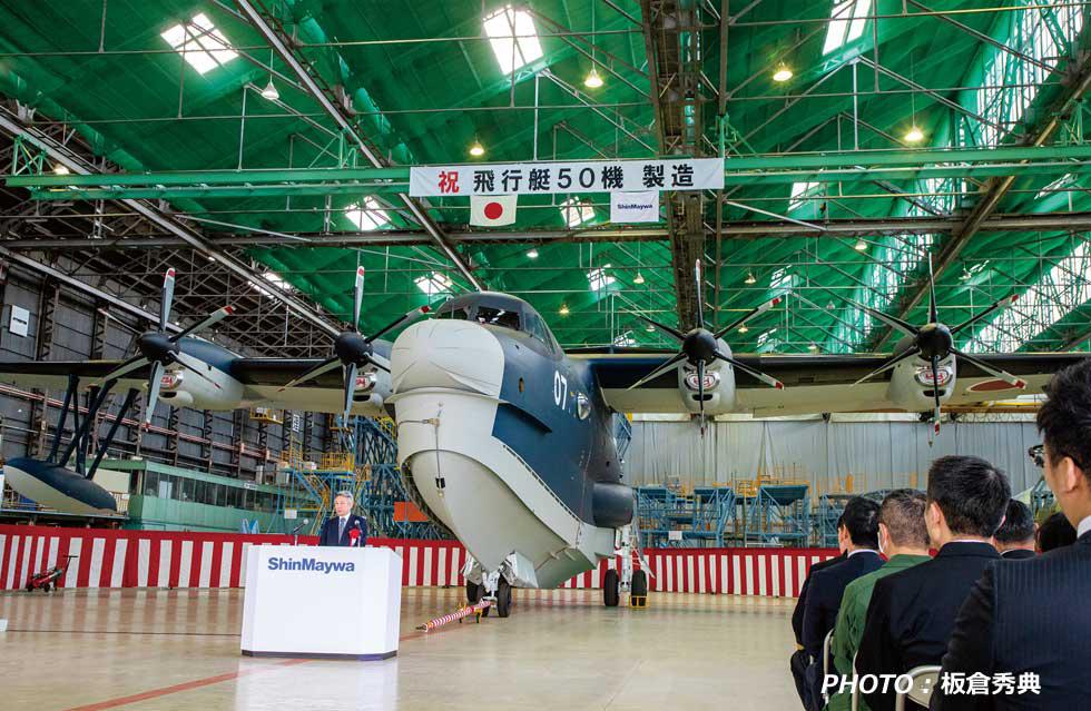 また、新明和の飛行艇製造通算50機を記念したセレモニーが新明和の甲南工場で実施。