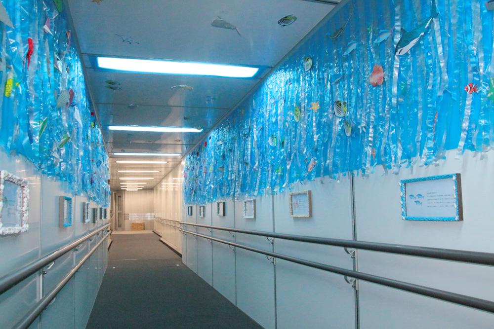 搭乗橋の中がまるで水族館に