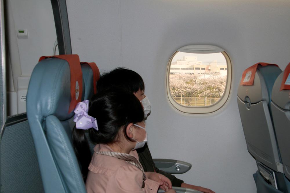搭乗してきたのは3人の子供を連れた母親。席に着く時に娘を「そらみ」と呼んでいるのが聞こえてきました。聞いてみると、7歳の娘の名前が空愛(そらみ)ちゃんだとのこと。名付けた母親は根っからのファイターファンで、特にF15とF35がお好きだとか。他の娘さんも航空宇宙に関する名前です。