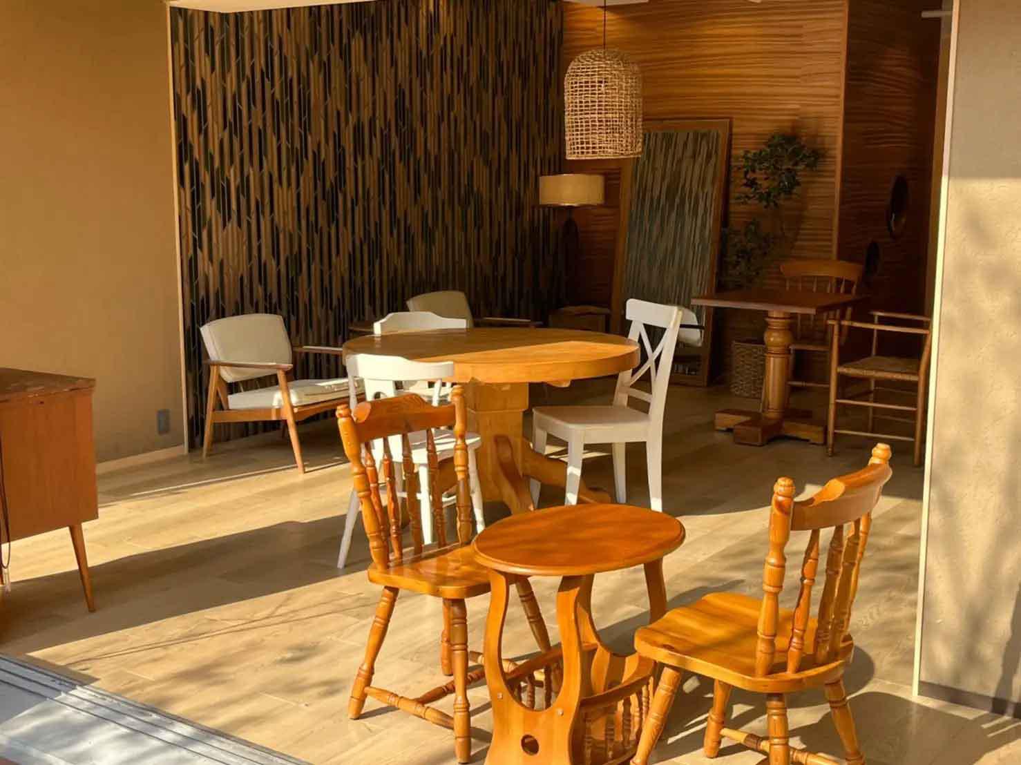 白と木目を基調とした店内にある家具は全てアンティーク。ゆったりとした時間を過ごせます。