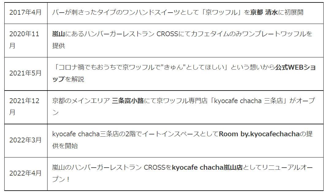 ジャパンリゾート株式会社が展開する「kyocafe chacha(キョウカフェ チャチャ)」は、2022年4月8日(金)京都 嵐山に2店舗目となるワッフル専門カフェ「kyocafe chacha 嵐山店」をグランドオープンします。京ワッフルを使ったランチプレートや、京都らしい宇治抹茶を使った限定フレーバー等、嵐山店限定のフレーバーも多数展開します。