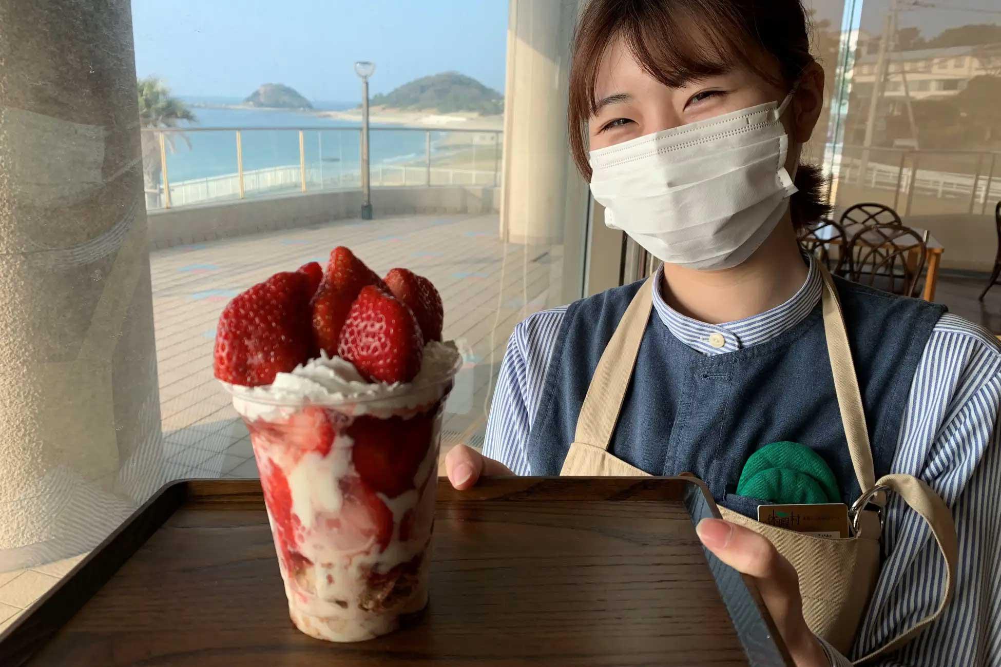 九州産業大学商学部と休暇村志賀島の連携プロジェクト 志賀島産「あまおう」を使ったスイーツ2種の販売を開始。甘味処「あいらん堂」で5月下旬まで数量限定で販売中!