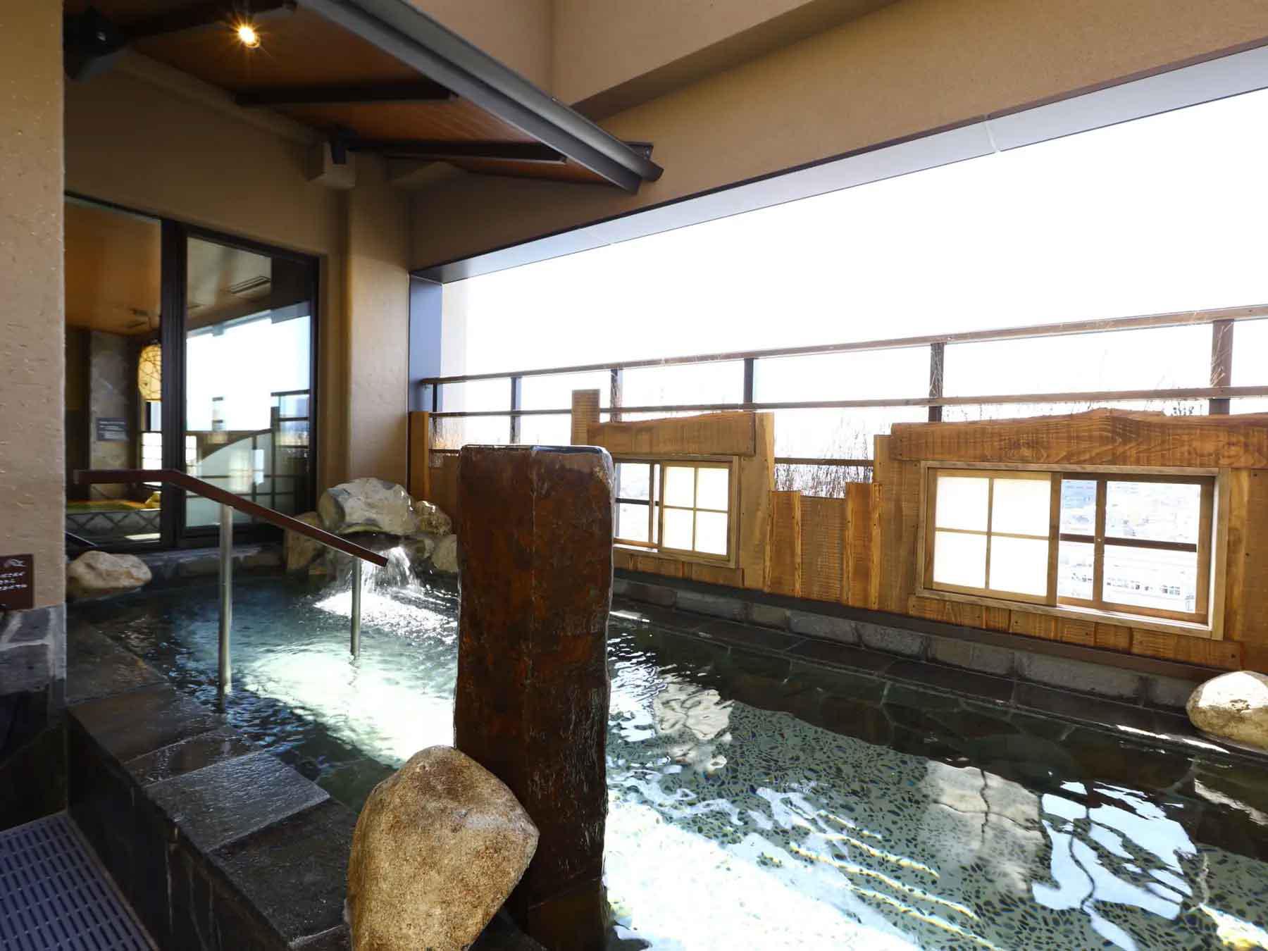 ドーミーインチェーンとしては、長野で3棟目となり、和風プレミアムブランド「御宿 野乃」としては、全国10棟目、甲信越エリア初出店となります。全館畳敷きで旅館の雰囲気を感じることができ、最上階の10階には、北アルプスを一望することができる天然温泉大浴場を完備。その他、露天風呂、セルフロウリュ完備の本格ドライサウナ、水深90㎝(男性)、60㎝(女性)の強冷水風呂を利用できます。泉質は、アルカリ性単純温泉で、美肌効果、疲労回復などの効能があります。