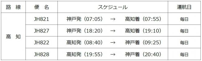 関西エアポートグループは、フジドリームエアラインズ(JH)が、神戸=高知線を2019年12月20日(金)に新規就航し、毎日2便運航を開始した。
