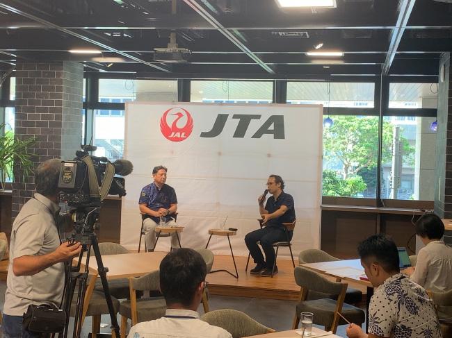 日本トランスオーシャン航空では、中期経営計画にも掲げられている「SDGsの達成に向けた取り組み」の一貫として、2019年10月1日より、那覇〜福岡便の「クラスJシート」向けの機内サービスとして提供が開始されている「木のストロー」についての記者発表会を、4日、那覇市内で開催した。